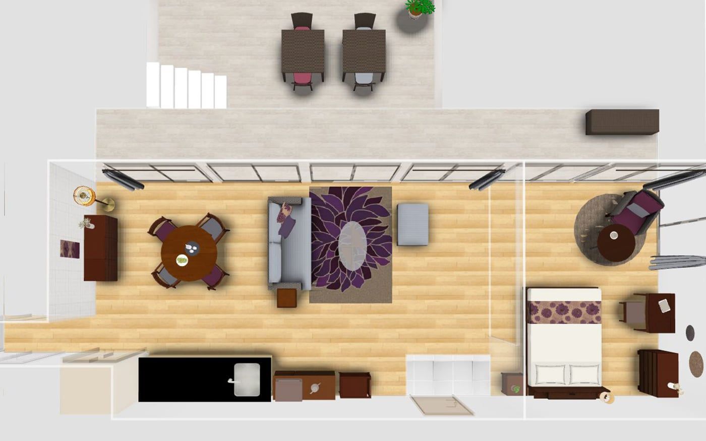 バルコニー:2~4人掛けダイニングテーブルのレイアウト例