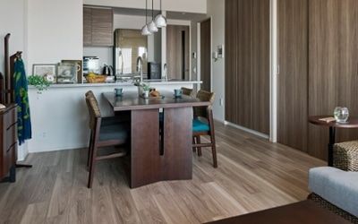 リゾートのような非日常感が漂う4~6人掛けのダイニングテーブル実例