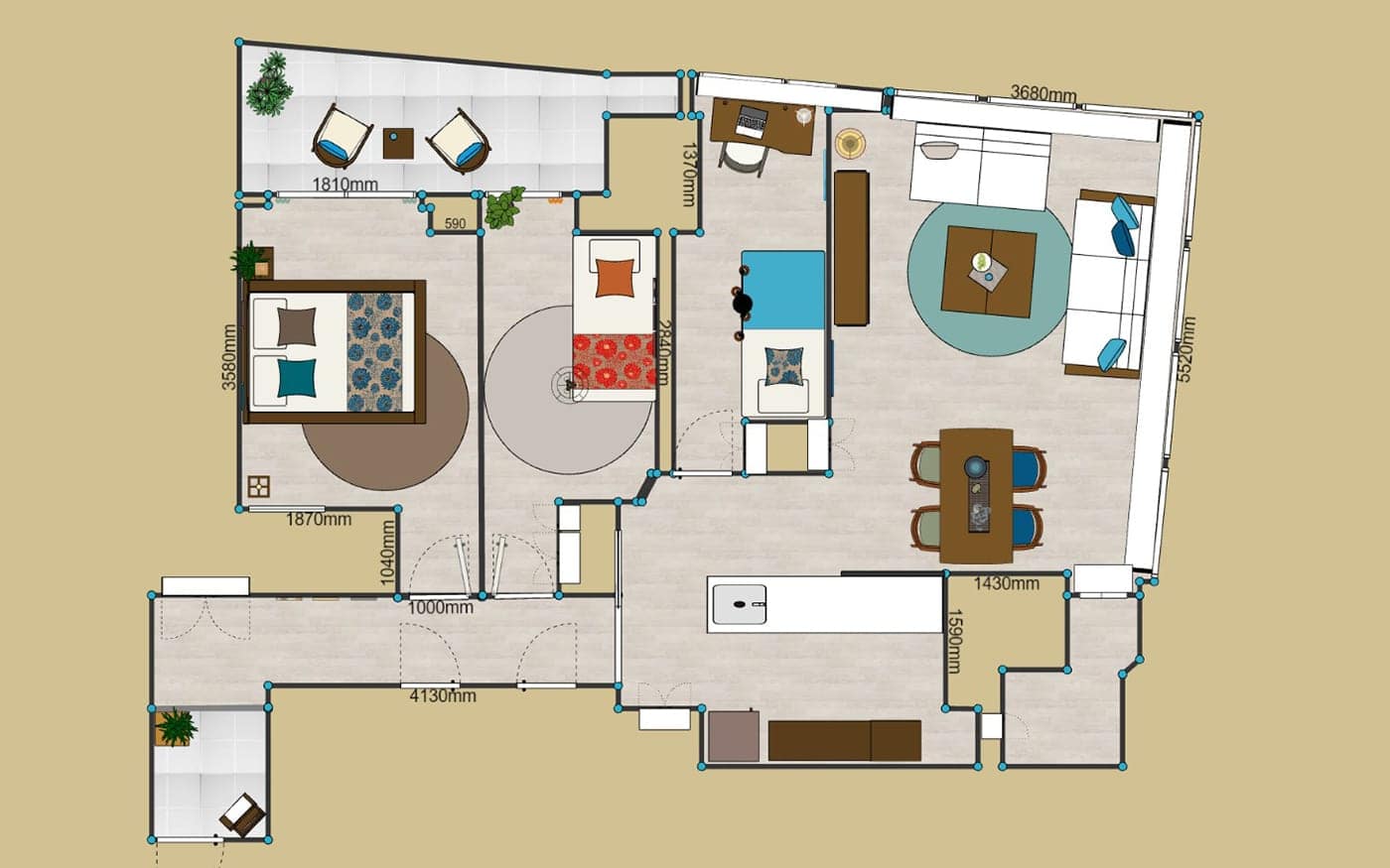 川の字のレイアウトでダイニング周りの通路を確保した実例