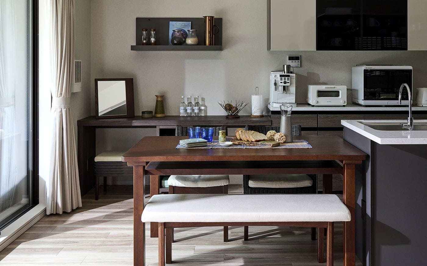 キッチンは家の中心です。ダイニングテーブル周りだけでなく、効率的な家事動線と十分な作業スペースが料理を快適にし、日々の暮らしをスムーズにします。家族の健康を支える場所だからこそ、機能性と快適さを兼ね備えた家具選びが大切です。