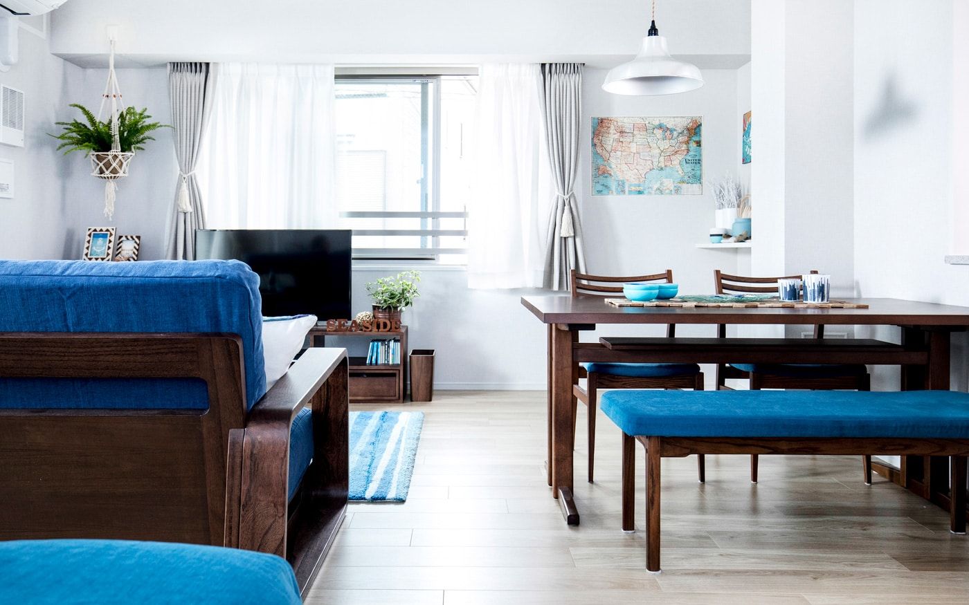 東京に多く建てられている「狭小住宅」に合う家具選びとインテリアコーディネートを、実例と共にご紹介します。細長い特徴的な間取りのリビングダイニングを、コンパクトな家具やブルーのカラーコーディネートで開放感溢れる空間に仕上げております。是非参考にしてみてはいかがでしょうか。