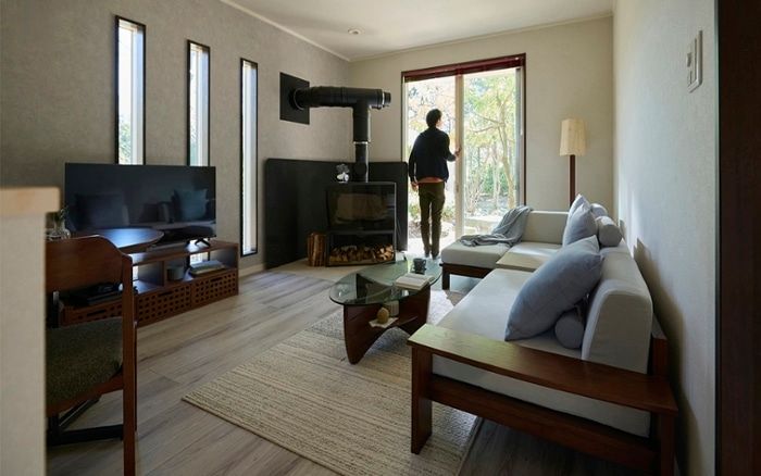 ソファとテレビ台の間にローテーブルを置かなければ、テレビ台の収納からスムーズに取り出せます。また、間にはゆったりした通路幅が生まれるため、部屋を広く見せることも可能に。サイドテーブル一つ置くだけでも快適に暮らせるでしょう。