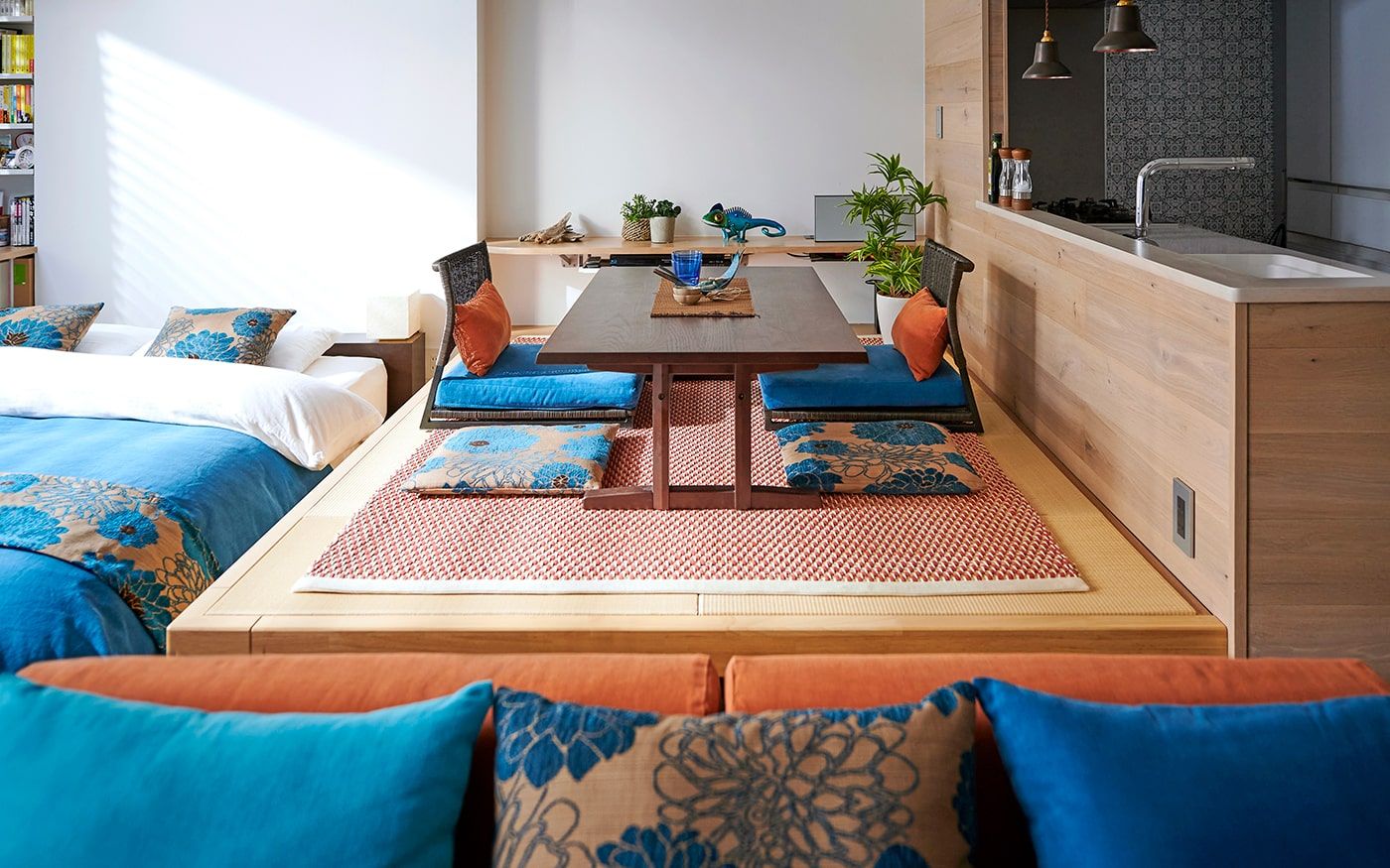 【2LDK インテリア実例】ローソファの開放感と和室に癒されるインテリアコーディネート