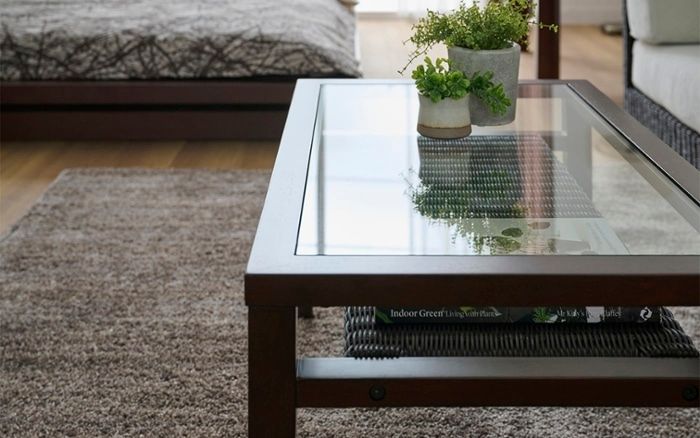 ガラスや天然の編み込みなど軽やかな印象の素材は、空間に軽やかさを演出してくれます。10畳の空間がより開放的に、広々と感じることができるでしょう。