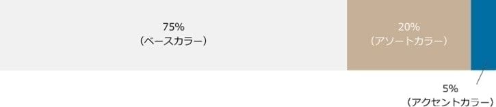 カラーコーディネートを行う際、センスが良く見える配色の比率があり、その黄金比率は「70:25:5」のバランスです。最も面積を占める色を「ベースカラー」、次に多い色を「アソートカラー」、一番面積の小さい色を「アクセントカラー」といいます。この黄金比を意識して、素敵なインテリアをコーディネートしてください。