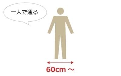 ここでは、基本となる生活動線(=人が通れる幅)を確認しておきましょう。人が快適に過ごせる幅や距離を覚えて、これからのお部屋作りの参考にしてください。