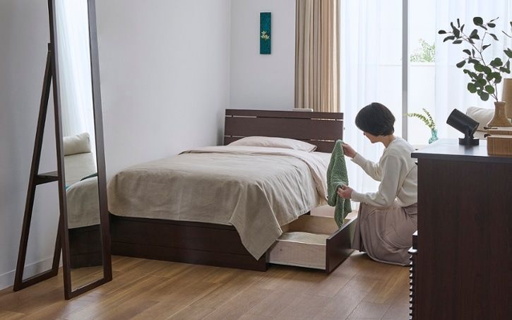 すっきり整えられたお部屋は、収納力とくつろぎを兼ね備えた心地よい空間に。また、余計なものが視界に入りにくくなるため、リラックスした雰囲気も生まれます。