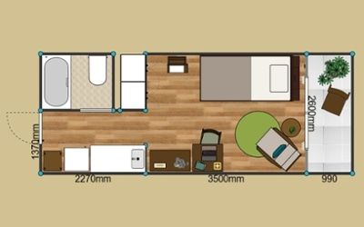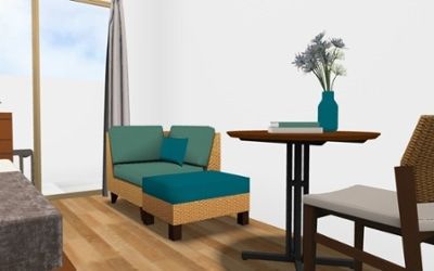 a.flatでは3Dコーディネートシステムを使ってご自宅の間取りや色をリアルに再現することができます。バーチャルでシミュレーションすることで、6畳のサイズ感やレイアウトを事前に確認できます。