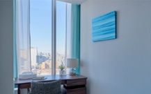 ブルーのアクセントが映える涼やかな6畳レイアウト