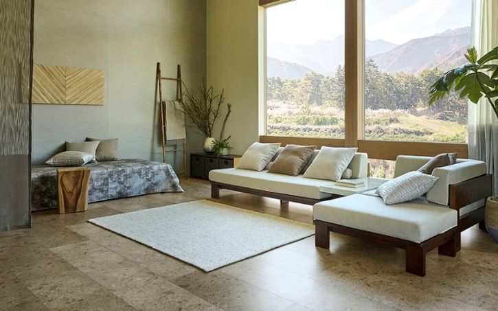 雄大な大地の色合いにインスピレーションを得たアースカラーズスタイルのインテリア。リビングルームでは、ベージュやアイボリーのファブリックを纏ったローソファや地層を感じさせる石のローテーブルが穏やかなアクセントを提供。ダイニングエリアは、地球の地層や渓谷をイメージした家具と大地の色合いを取り入れたテキスタイルで自然感あふれる空間を演出。寝室では、サンドベージュやアイボリーのベッドファブリックと素材感のあるクッションが安らぎの空間を実現。各部屋は、素材感のあるアイテムでメリハリをつけることがポイントです。