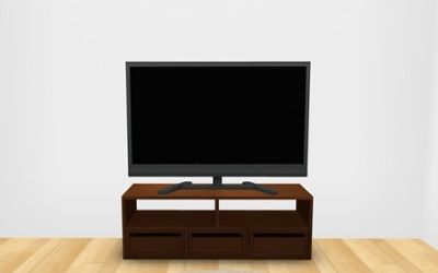 テレビとテレビボードは三角形を描くようなサイズ感が理想。