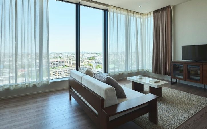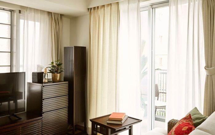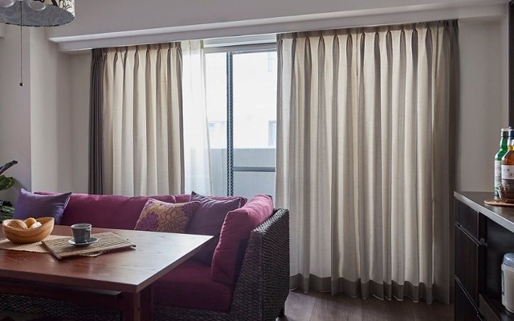 マンションは気密性が高く、上層階など特に日当たりが強い場合は、夏場など室内に熱がこもりやすい傾向があります。遮熱レースや遮光ドレープなど、断熱性のあるカーテンを選べば、外気温の影響を抑えることができ快適なリビングを実現できます。