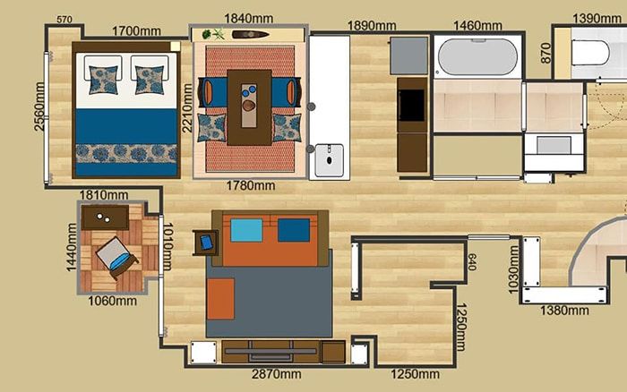a.flatでは3Dコーディネートシステムを使ってご自宅の間取りや色をリアルに再現することができます。バーチャルでシミュレーションすることで、12畳リビングに最適なレイアウトを確認しましょう。