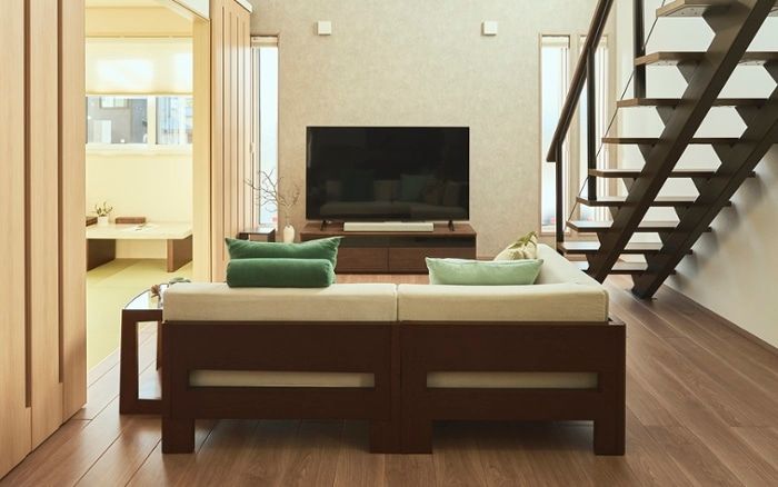 可変性のあるソファでレイアウト変更が楽しめるリビング