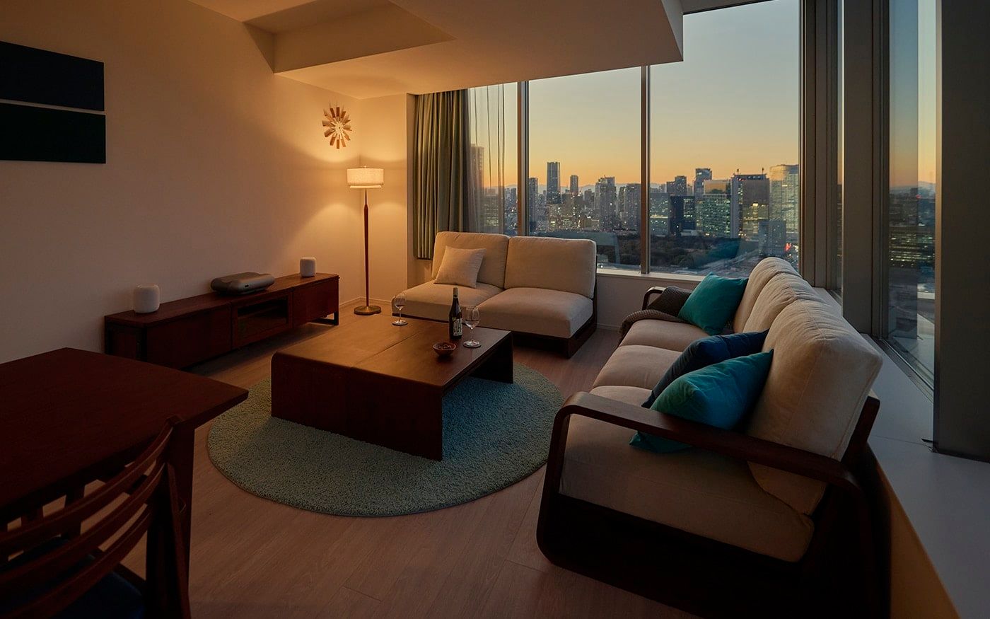 高層階の魅力は何といっても眺望。特に角部屋は太陽の動きに合わせて変わる空の表情がそのまま、部屋の中まで届きます。室内にも明かりを取り入れ、移り変わる時間とともに楽しめるインテリアを。