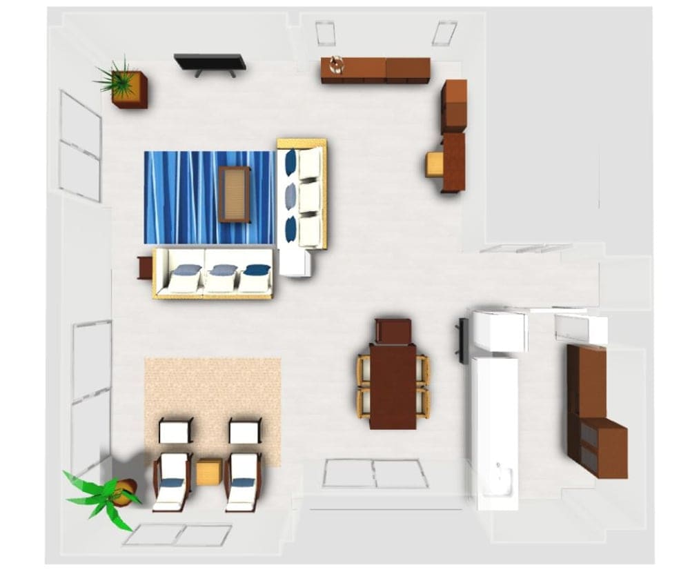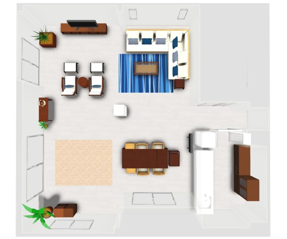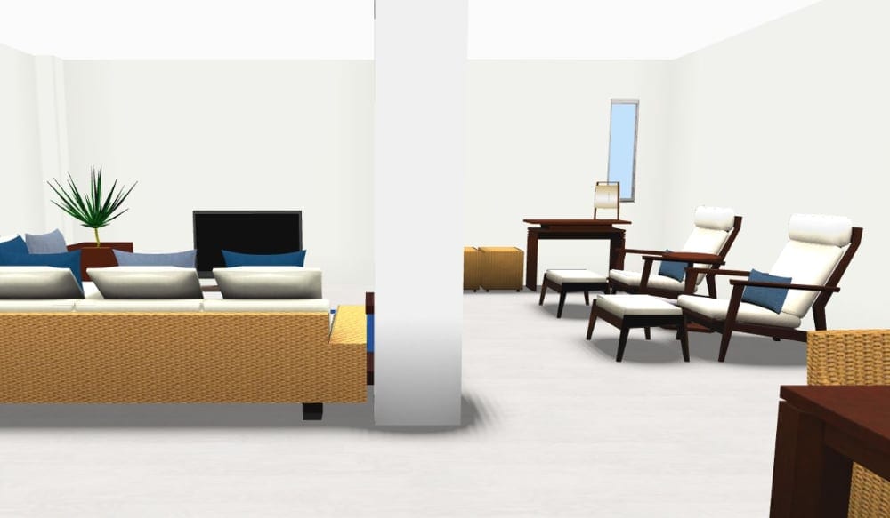 広いリビングをインテリアコーディネートをする為の「レイアウト」と「家具選び」のテクニックをご紹介して参りましたが、それに加えて【3D家具配置シミュレーションサービス】を行うことでレイアウトを可視化することが出来、イメージがし難い広い空間もスムーズにインテリアコーディネートをすることが出来ます。