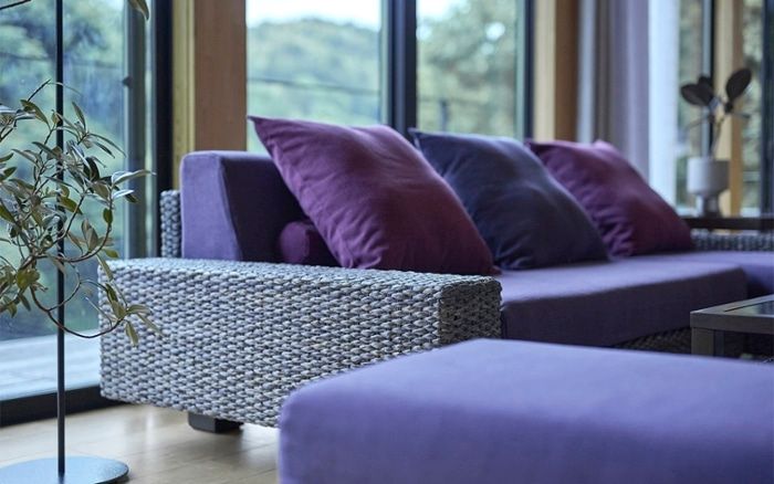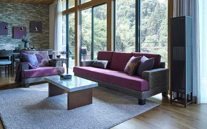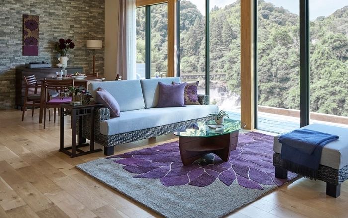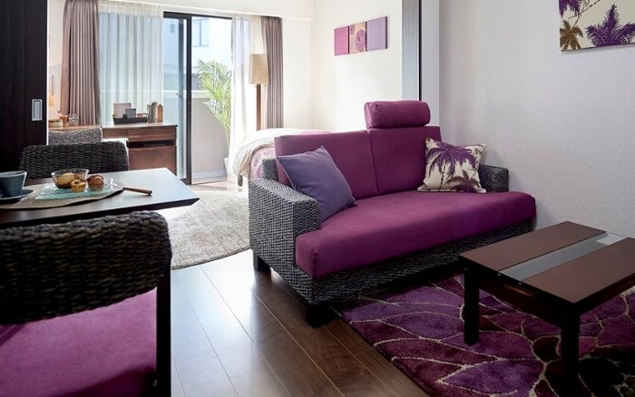 艶のあるパープルは、高級感がありホテルライクなコーディネートに向いているカラー。ワンポイントに取り入れても映える色で、リビングをパッと明るくラグジュアリーな雰囲気に変えられます。