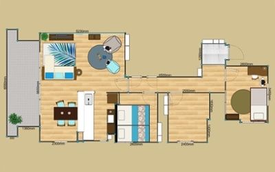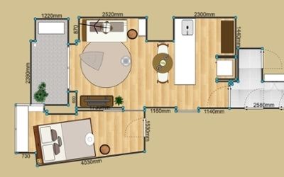 図面を参考に、自宅の間取りを10m単位で作成します。床・壁・天井の色や建具の設置が可能で、再現度の高い3Dの内装が作れます。