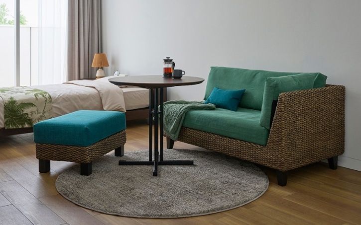 ヒヤシンス素材のコンパクトソファ。ナチュラルなテイストや、開放感のあるリビングづくりに適しています。