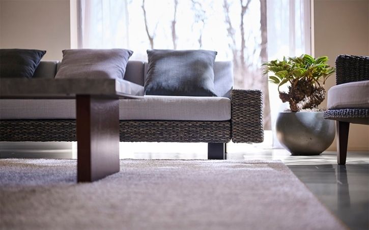 ヒヤシンス素材をダークグレーに着色したロータイプのソファ。落ち着きのあるシックなリビングにおすすめです。