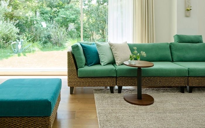 ソファはオットマンやカウチなど、その他の家具を組み合わせることで、より寛ぎやすいL字ソファとして使えます。組み方によって、見え方や過ごし方が異なるソファタイプを作れますね。
