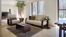 無垢材タイプのローソファ。木の温かみや質感を楽しめるデザインで、ゆったりと寛げるリビングを叶えます。