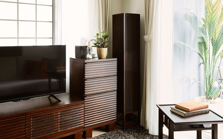 リビングをスッキリ見せるしまう収納重視の木製キャビネット