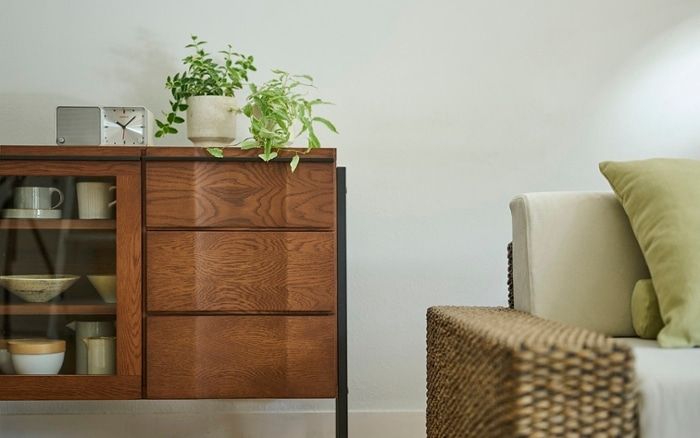 サイドボードは、収納力が優れており、色々な大きさの物を収納しやすいサイズ感が多くあるため、リビングにおすすめの収納家具です。