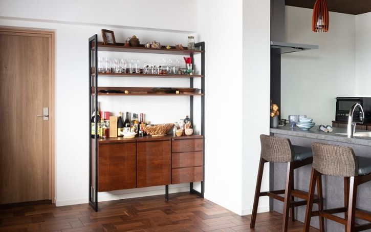 スタイリッシュながらも無垢材を感じる収納は、センス要らずで空間をおしゃれに見せてくれます。