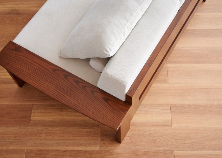 ソファ本体とアームや脚パーツの着脱には、日本古来の木工技術・ほぞ組みの一種である「片胴付き」を応用し、パーツ同士が重なり合って強度を増す接続方法を採用しています。