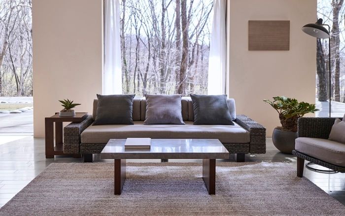 古くから日本で親しまれている、籐素材を使ったソファ。和風テイストに自然と馴染み、シックなコーディネートを演出します。