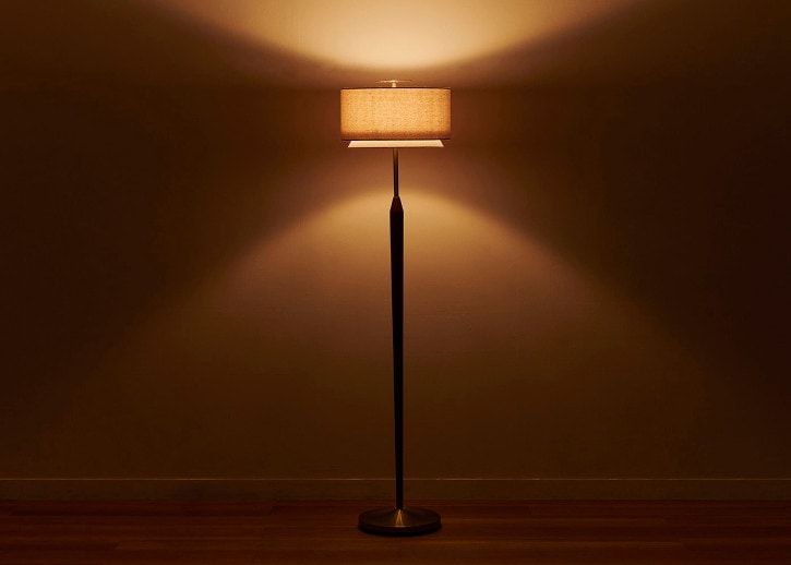 背の高いフロアランプは、シックな空間のアクセントになるインテリアアイテム。コーディネートにメリハリが生まれ、おしゃれな印象を与えます。また、部屋のデッドスペースを有効活用してレイアウトできるため、積極的に取り入れたいインテリアアイテムです。