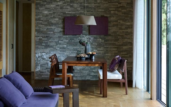 ■石材のアクセントウォールを取り入れた実例