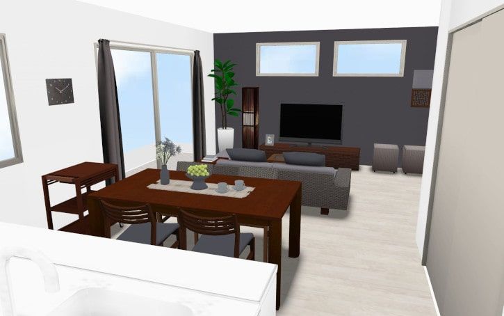3D家具配置シミュレーションでは、シックな部屋のイメージを細かく再現可能です。自宅の間取りサイズや内装、家具・インテリアのレイアウトなどを反映できます。そのため、部屋作りで失敗しにくく理想通りのコーディネートを叶えられますね。