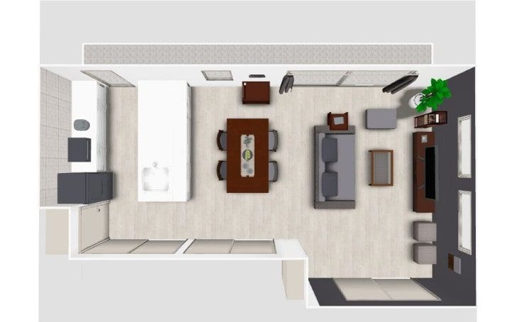 3D家具配置シミュレーションを元に、シックな部屋を叶えたインテリア実例。統一感のある洗練されたおしゃれなリビングダイニングが完成しました。3Dで事前にイメージ確認することで、コーディネートにまとまりがある居心地の良い空間を作れます。