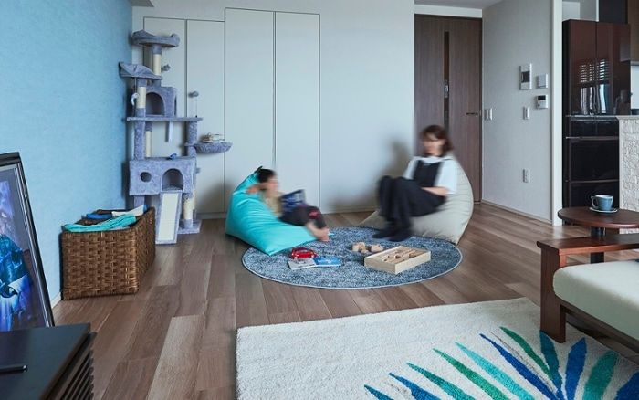 小さなお子様や猫ちゃんとの暮らしを大切にするためには、ロースタイルの家具が安心です。ビーズクッションやラグを敷くことで、床座の生活をリビングに取り入れ、家族全員がリラックスできる空間に。転倒のリスクを減らし、お子様も自由に動き回れる快適な環境が整うでしょう。