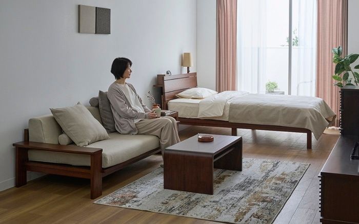 ワンルーム・1K向けのソファ選びでは、まずはお部屋に置けるかどうかがポイントになるため、サイズ選びが大切になります。また、ひとつの空間にソファやベッドなどの大型家具をまとめて置くため、間取りの広さは関係なしに開放的ですっきり見えるようなデザインを選ぶことも重要。