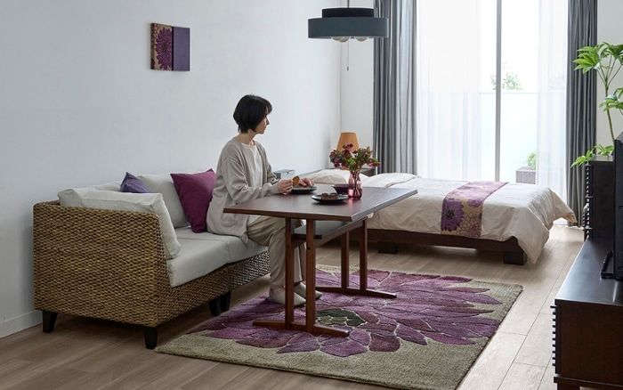 ソファダイニングとは、寛ぐことができるソファと、食事や作業ができる少し低めのダイニングテーブルを組み合わせた1台2役の家具。省スペースになるためワンルームや1Kのように限られた空間にはぴったりなスタイルです。リモートワークなど自宅で仕事をする機会が増えた昨今、人気が高まっています。