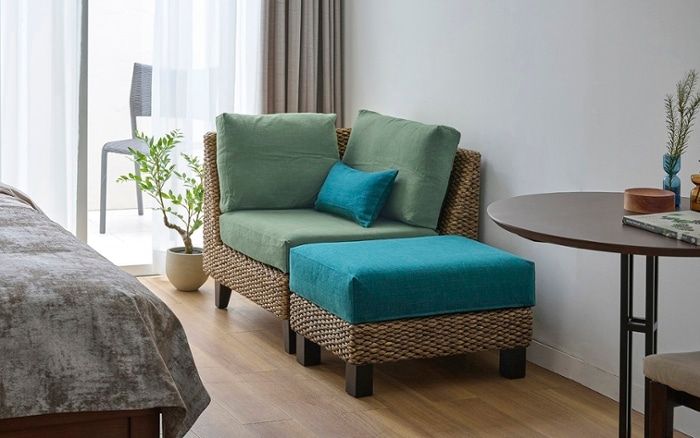 ナチュラルモダンの部屋を作る際は、素朴な雰囲気も感じさせる自然素材の家具が欠かせません。一人暮らしのワンルームにお薦めなのは、繊細な編み込みのラタン素材を使ったラウンジチェアです。ラウンジチェアのサイズ感であれば、場所も大きく取らずに部屋が作りやすくなります。