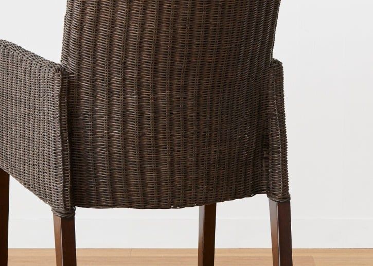 ラタン素材が綺麗に編み込まれたムン・ダイニングアームチェア(ラタン)。編み込みが綺麗なのは隙間が無い証拠。