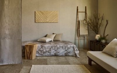 雄大な大地の色合いにインスピレーションを得たアースカラーズスタイルのインテリア。リビングルームでは、ベージュやアイボリーのファブリックを纏ったローソファや地層を感じさせる石のローテーブルが穏やかなアクセントを提供。ダイニングエリアは、地球の地層や渓谷をイメージした家具と大地の色合いを取り入れたテキスタイルで自然感あふれる空間を演出。寝室では、サンドベージュやアイボリーのベッドファブリックと素材感のあるクッションが安らぎの空間を実現。各部屋は、素材感のあるアイテムでメリハリをつけることがポイントです。