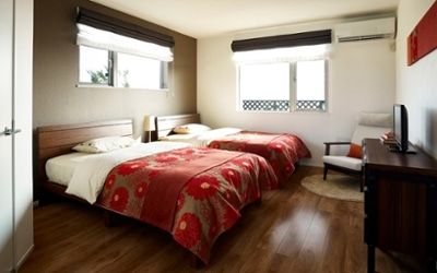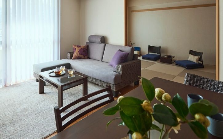 「リヤド」とは噴水や緑のある中庭が付いたモロッコならではのお洒落な邸宅風ホテル。モロッコの大地を感じるアースカラーの色使いと、ドライな空気感を演出するざっくりとした風合いのあるヒヤシンス素材のソファが印象的なインテリアコーディネート。リヤドで過ごすモロッカンリゾートのゆったりとしたひと時を演出します。
