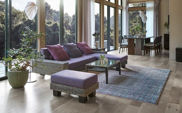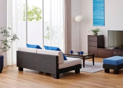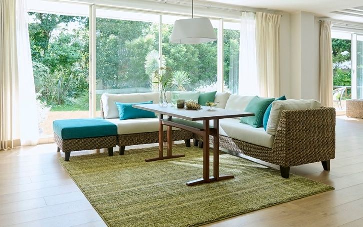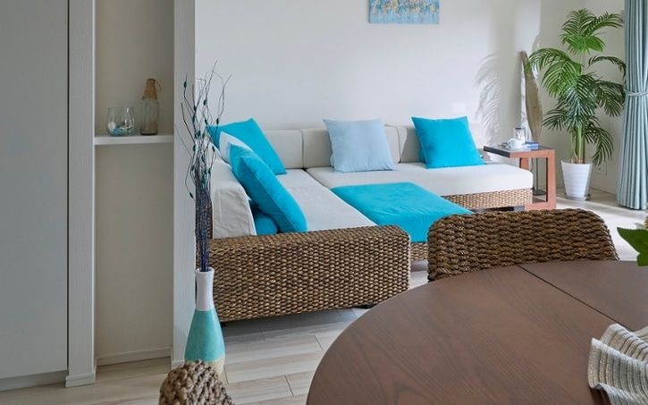 爽やかな雰囲気を纏ったラタンは、透明度の高い海が特徴の沖縄リゾートと良く合います。ラタンの落ち着いた色合いは、鮮やかなブルーを引き立たせて美しいリビングを演出します。また、ラタンは和の印象も強いため、日本のリゾートである沖縄にぴったりです。