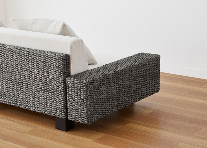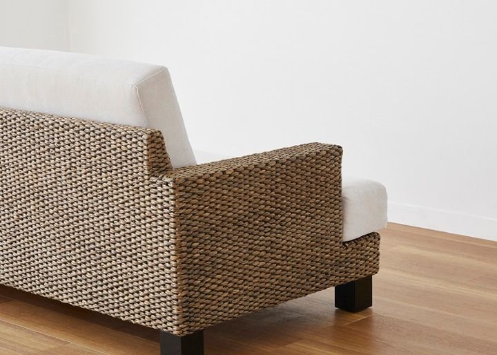 高さを抑えたロースタイルのソファは、リビングのどこに置いても開放感を損ねません。また、背面までヒヤシンス素材を贅沢に編み込んでいるため、どこから見てもリゾートらしい雰囲気を楽しめます。