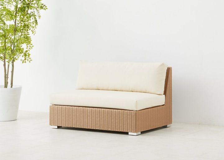 リゾートソファには、自然を感じられる天然のラタン素材がおすすめですが、屋外でソファを使用したい場合には人工ラタン素材を選ぶと良いでしょう。