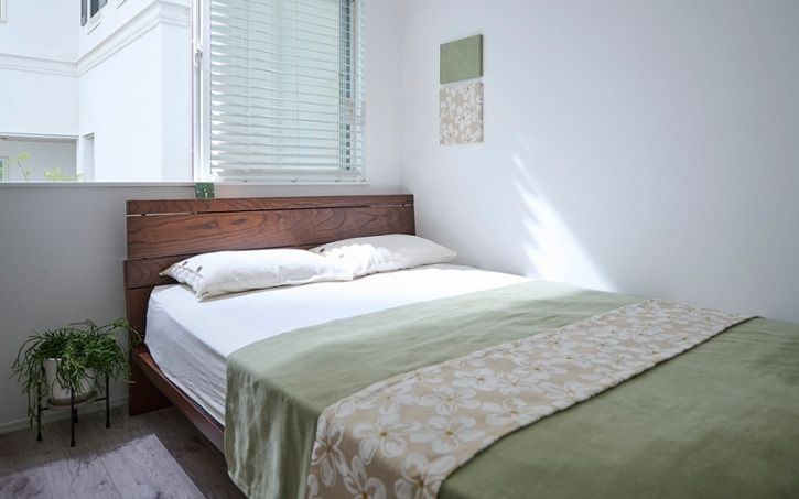 【プルメリア×淡いグリーン】ナチュラルな優しさに包まれる寝室