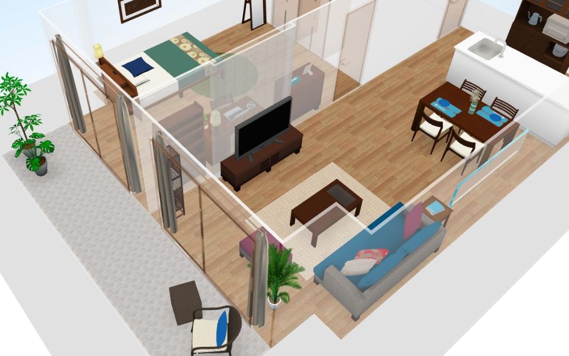 もし、これからご自宅をアイランドブルー・スタイルのように沖縄リゾート風の空間にしたい方や、様々な理想のイメージにて部屋作りをされたい時は、a.flatの3Dシミュレーション(=マイルーム3D)を試してみてください。自分だけのお好みの部屋を、実際のイメージに近づけて叶えることができます。