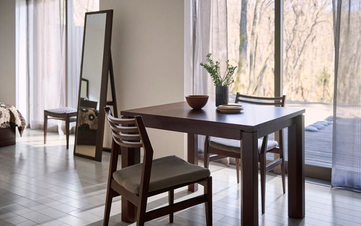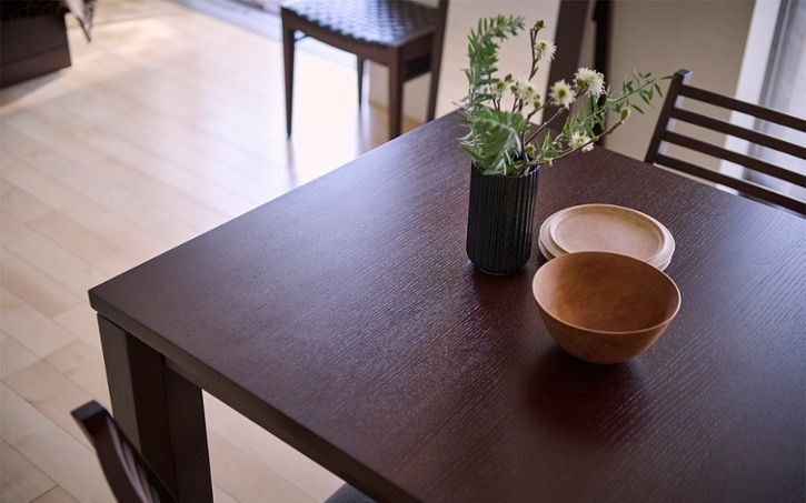 ダイニングテーブルは、部屋の印象を左右する大切なインテリアです。デザインや色、テイストに統一感を持たせることで、部屋全体にまとまりが生まれ、過ごしやすい空間を演出できます。