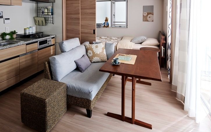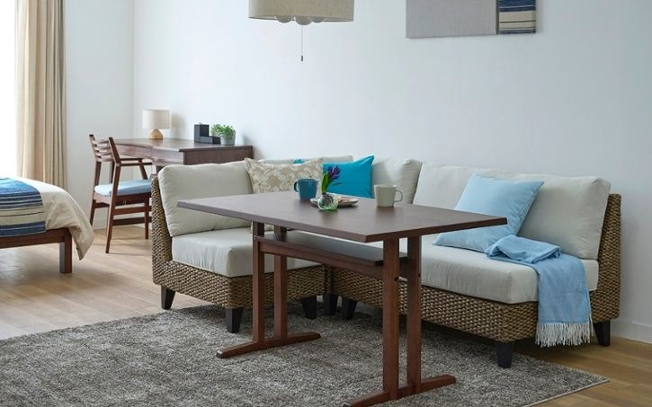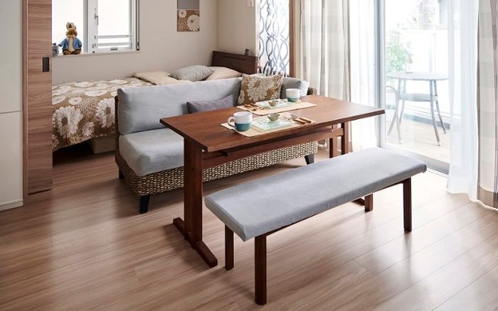 一人暮らしでスペースが限られる場合でも、食事スペースとくつろぎスペースを両方確保したい。そんな場合は、コンパクトで広く使えるダイニングテーブルと座り心地の良いソファを組み合わせるのも一つの方法です。
