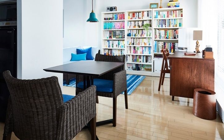 1LDKの間取りで、プライベートと仕事、友人との時間を快適に過ごせるよう家具選びやレイアウトにこだわった、一人暮らしの女性のインテリア実例。色使いにもこだわった、統一感のあるおしゃれな空間演出も見どころです。